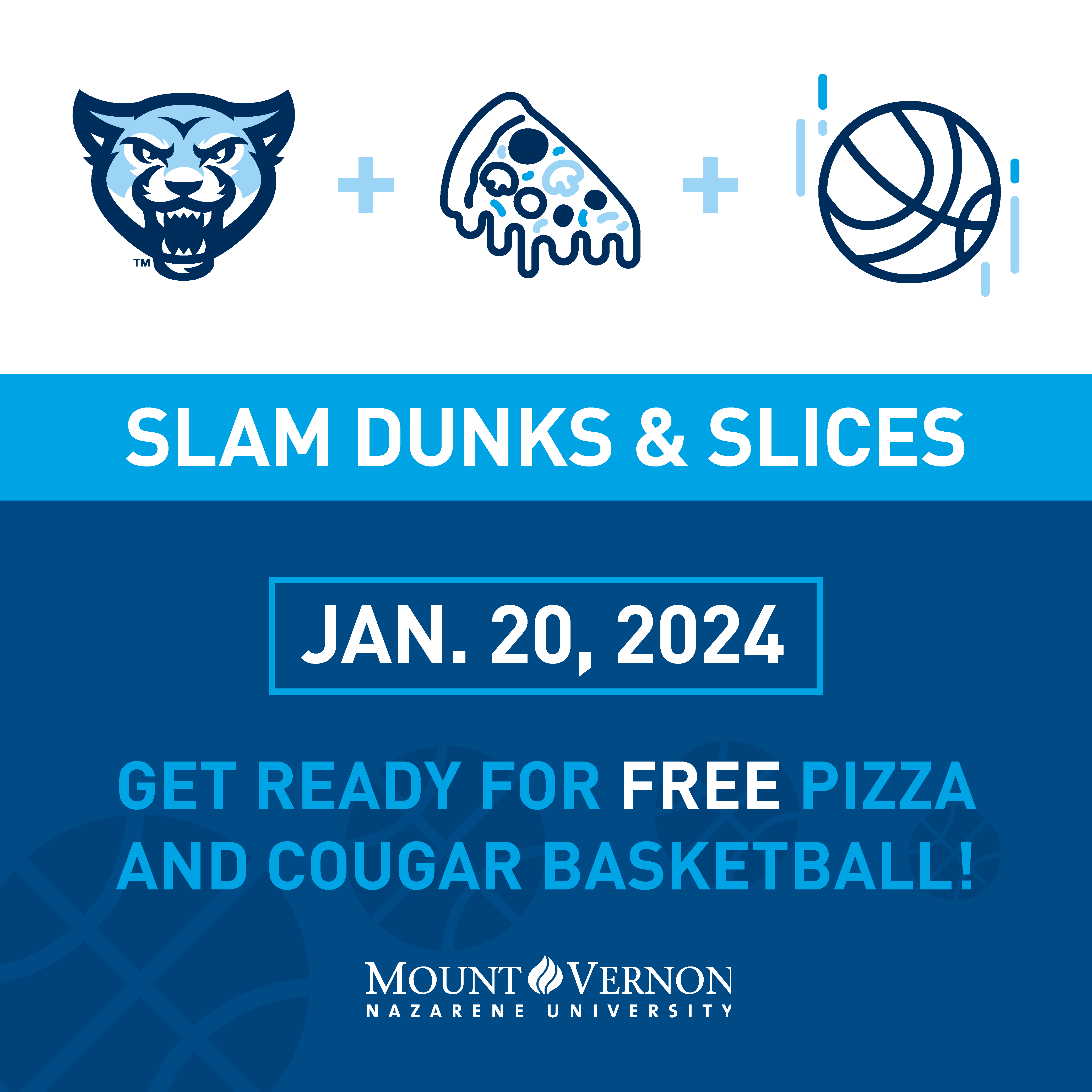 Join us for an MVNU Men's Basketball game, good pizza, and big prizes (including a Meta Quest 2 Virtual Reality Headset!) — all for FREE!