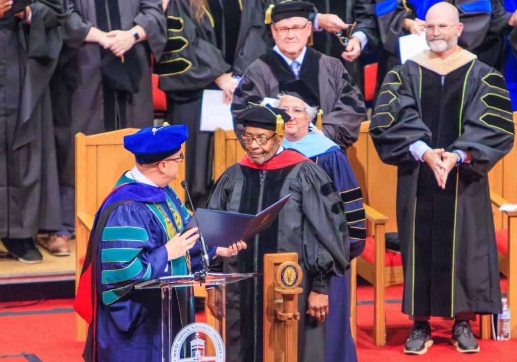 Bishop Edward T. Cook and Mark R. Ramser were honored with a Doctor of Divinity and Doctor of Humane Letters degrees, respectively.